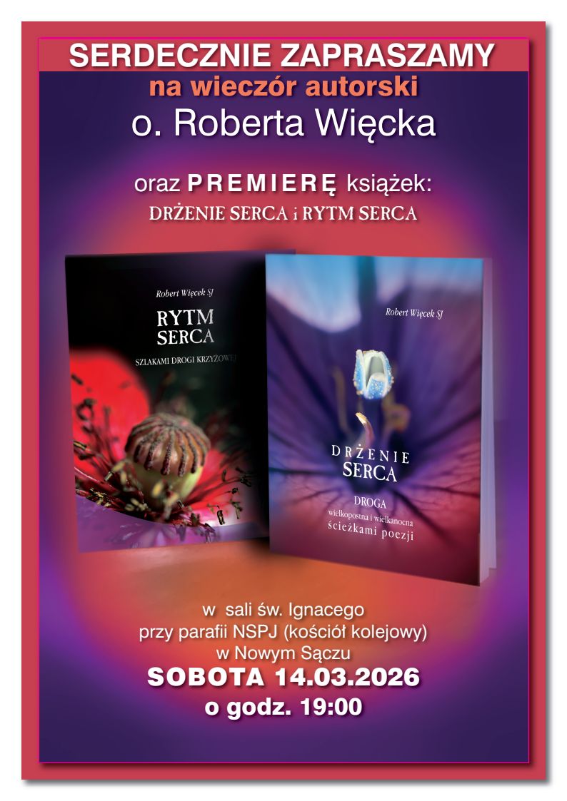 Wieczór odbędzie się w sobotę 14 marca, godz. 19.00 w sali św. Ignacego przy parafii NSPJ (kościół kolejowy) w Nowym Sączu.